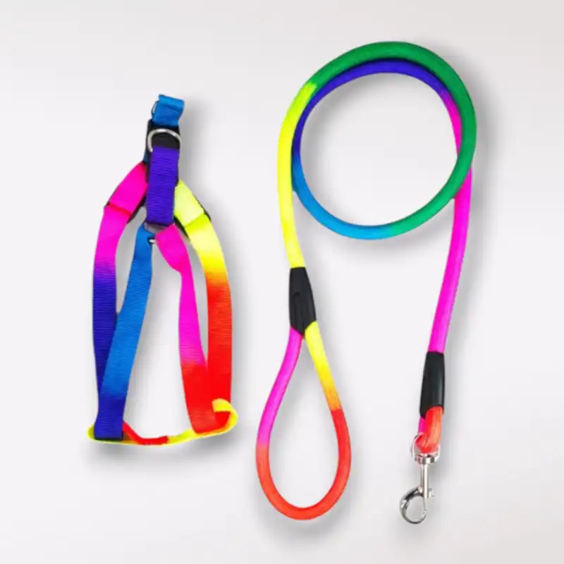 Si buscas un accesorio que combine estilo y funcionalidad, el arnés ajustable con correa de diseño arcoíris es la elección perfecta. ¡Haz que cada paseo sea memorable y lleno de color!