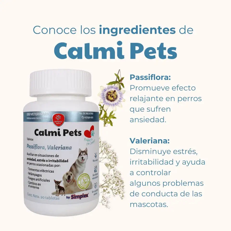 Ambos ingredientes actúan sin generar dependencia, somnolencia excesiva ni efectos secundarios. Al ser homeopático, Calmi Pets es seguro incluso para uso prolongado.