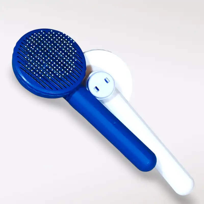 Fácil de limpiar: Cuando hayas terminado de cepillar a tu mascota, simplemente haz clic en el botón y el pin de masaje se retrae en el cepillo, por lo que es muy fácil quitar todo el pelo del cepillo. ayuda a limpiar el pelo y los residuos del cepillo después de su uso.