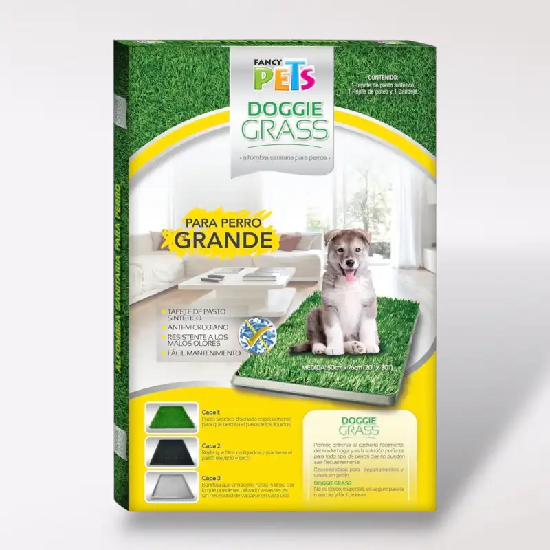 Si tienes un canino que no puede salir tan frecuentemente al baño, el Doggie Grass Tapete entrenador reutilizable es lo que necesitas. Diseñado para perros de hasta 7 kg, este tapete hará que olvides los días de sorpresa en lugares prohibidos.