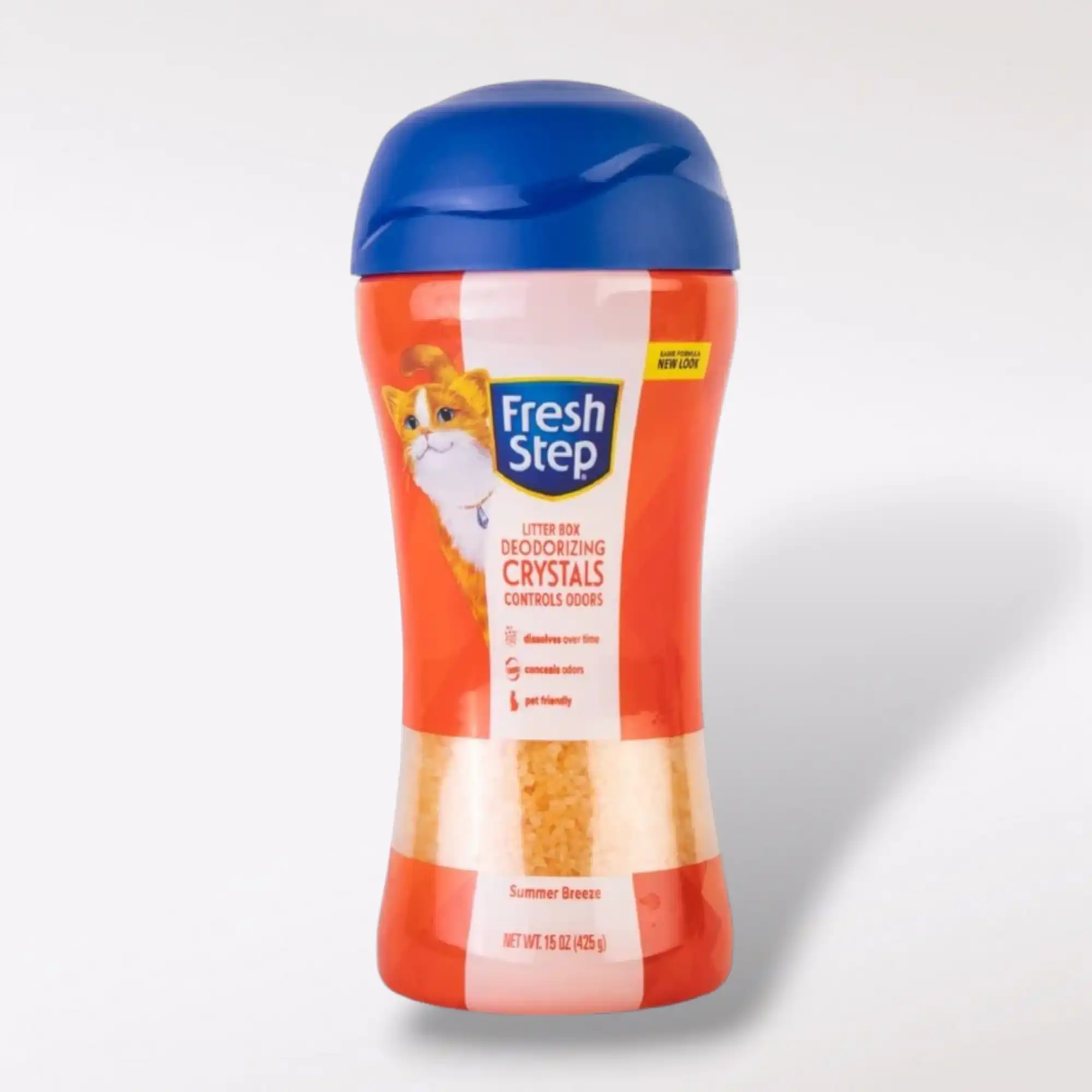 Con Fresh Step Perlas Desodorantes elimina malos olores del arenero de tu gato al instante y transforma la caja de arena en un espacio fresco y limpio. Con fórmula no tóxica y cristales que se activan al contacto, estas perlas aromáticas brindan seguridad, comodidad y una fragancia duradera. Compatible con cualquier tipo de arena. ¡Frescura garantizada para tu gato y tu hogar!