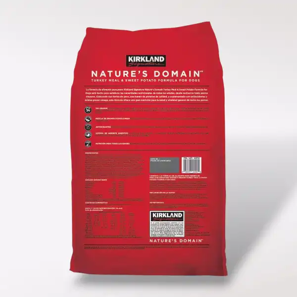 El alimento Kirkland Pavo y Camote Nature’s Domain está diseñado para acompañar a tu peludo desde sus primeras aventuras hasta su etapa adulta con una nutrición completa, balanceada y libre de granos. Elaborado con harina de pavo como fuente principal de proteína, esta fórmula fortalece su desarrollo muscular y mantiene su energía al máximo.