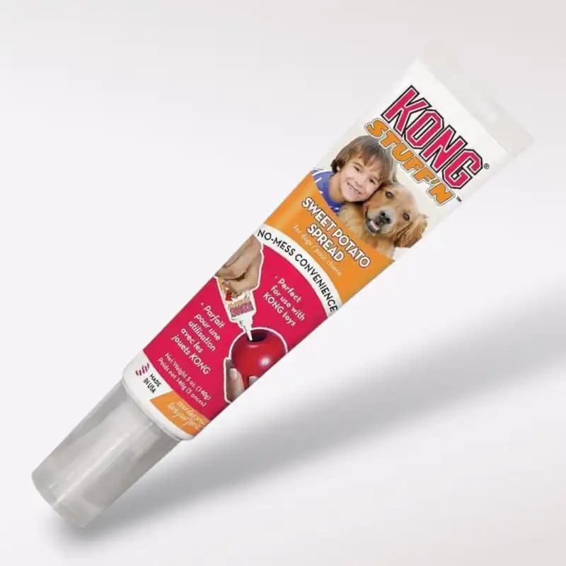 Imagina llenar esos populares juguetes Kong con esta pasta, ayudando a eliminar el aburrimiento y destrozos en casa debido a la ansiedad por separación o miedos. ¡Es un juego de niños! Solo necesitas aplastar el tubo de 5 oz (140g) y dejar que la diversión comience. Perfecto para esos días en que tu perro necesita un poco de tiempo de juego adicional.