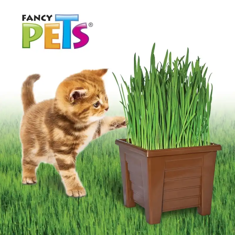 Kit con semillas de trigo y avena, sustrato y una maceta para la obtención de pasto. Beneficios: El Pasto natural para Gatos de Fancy Pets es una excelente opción para estimular el juego y la diversión de las mascotas, que debido a su origen vegetal es una fuente rica en vitaminas, minerales, clorofila, ácido fólico y fibra que ayuda a la digestión y expulsión de bolas de pelo en los gatos. Contiene todo lo necesario para que su mascota tenga su propio espacio verde y pueda mordisquear de forma segura y saludable. No debe confundirse con el catnip (Nepeta cataria) que es un miembro de la familia de la menta. Puede ser utilizado además de gatos, con perros y pequeños roedores como conejo y hámster.