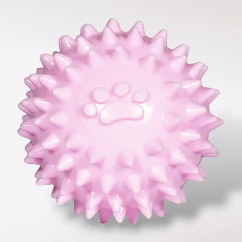 La Pelota masticable chica es ideal tanto para juegos, como para aliviar la sensación de comezón en las encías de los cachorros cuando están por salir sus nuevos dientes gracias a su textura de picos suaves. En dos hermosos colores pastel, tu canino podrá divertirse y masajeas sus encías. Compatible con Gatos y pequeñas especies como hurones y conejos.