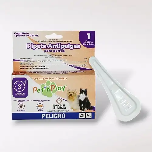 La pipeta antipulgas PetnPlay está formulada para eliminar y controlar pulgas, garrapatas, piojos y ácaros. Su acción ofrece protección prolongada: hasta 3 meses contra pulgas y 1 mes contra garrapatas con cada aplicación.
