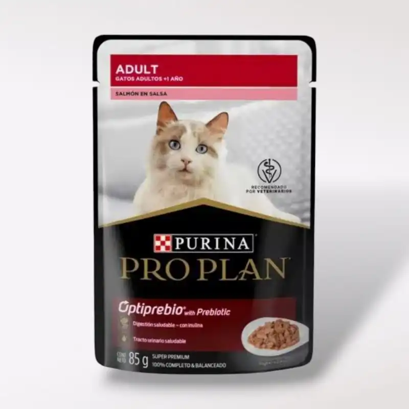 Pro Plan Optibrebio Pouch 85g. Receta Salmón es el alimento húmedo ideal para gatos adultos de todas las razas. Formulado por PURINA, este alimento no solo garantiza una nutrición completa y balanceada, sino que también es irresistible para tu compañero felino. Cada bocado está diseñado para satisfacer sus necesidades nutricionales, permitiéndole disfrutar de cada comida mientras se beneficia de un suministro óptimo de energía para su estilo de vida activo.