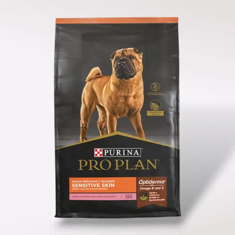 Con Pro Plan Sensitive Skin Optiderma Adulto, ofrece a tu perro de razas medianas y grandes una alimentación diseñada específicamente para minimizar la irritación cutánea asociada con la sensibilidad alimentaria. Esta fórmula avanzada no solo satisface las necesidades nutricionales, sino que también respeta la sensibilidad de la piel de tu mascota. Combinando ingredientes de alta calidad, como el salmón, cada croqueta está fríamente formulada para garantizar una nutrición óptima.