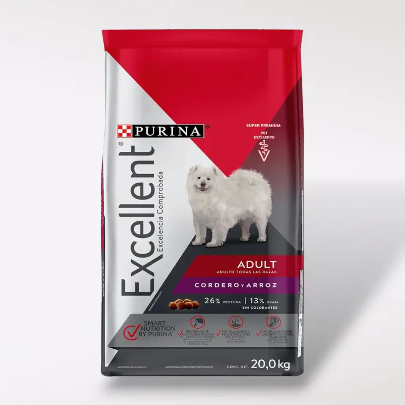 Con ingredientes de alta calidad como el cordero y el arroz, Purina Excellent Adulto no solo se preocupa por la salud de tu mascota, sino también por el sabor. Tu perro adorará cada comida, gracias a su fórmula que no contiene colorantes ni saborizantes artificiales. Esta deliciosa receta ha sido elaborada para satisfacer incluso a los paladares más exigentes.