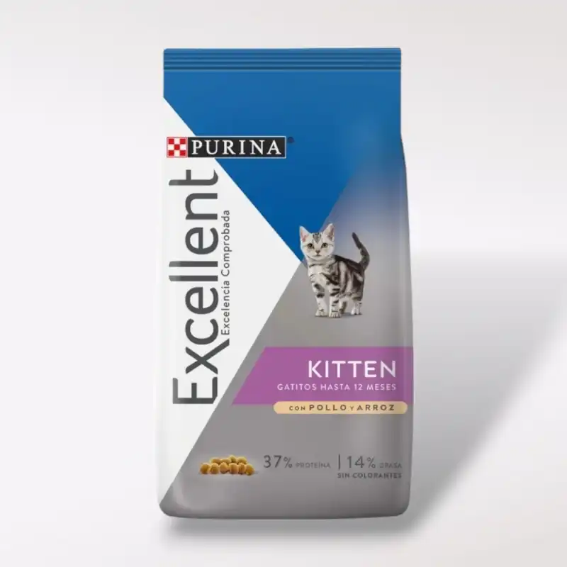 ¿Tienes un pequeño gato en casa? En su primer año, la nutrición es crucial. Con Purina Excellent Kitten pollo y arroz, tu gatito recibirá una fórmula completa que incorpora proteínas de alta digestibilidad. ¡Es como una buena comida para los músculos!