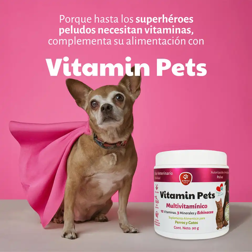 Ideal para perros y gatos de todas las edades, Vitamin Pets cubre las deficiencias nutricionales comunes en la dieta diaria, ayudando a prevenir enfermedades, reforzar defensas y mantener un pelaje sano y brillante. Su presentación en polvo facilita la dosificación y se mezcla fácilmente con el alimento favorito de tu mascota.
